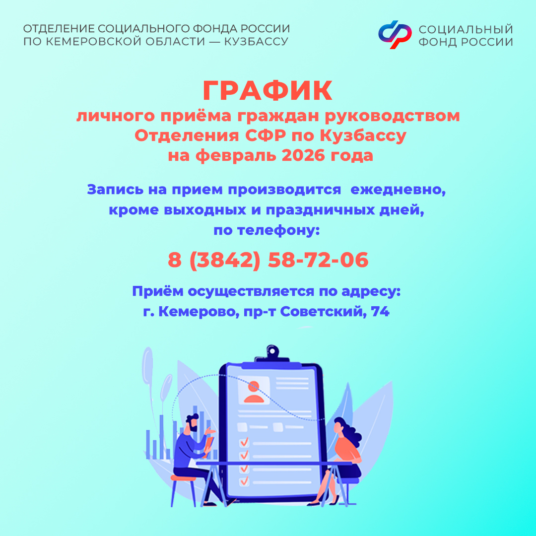 Последняя суббота каждого месяца – дополнительный приемный день в клиентских службах Отделения СФР по Кемеровской области – Кузбассу.
