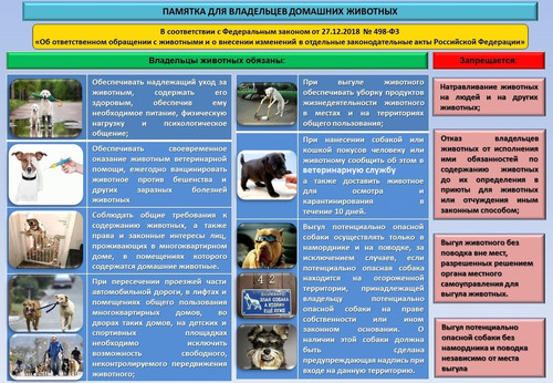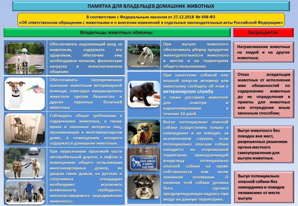 Согласно статье 9 Федерального закона № 498-ФЗ к общим требованиям к содержанию животных их владельцами относятся: