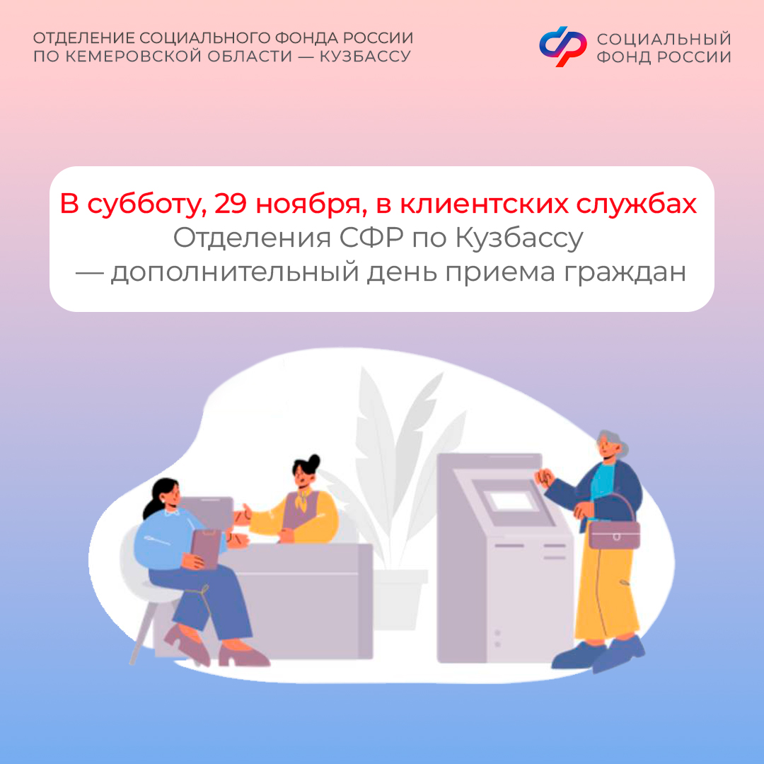 В субботу, 29 ноября, в клиентских службах Отделения СФР по Кузбассу – дополнительный день приема граждан