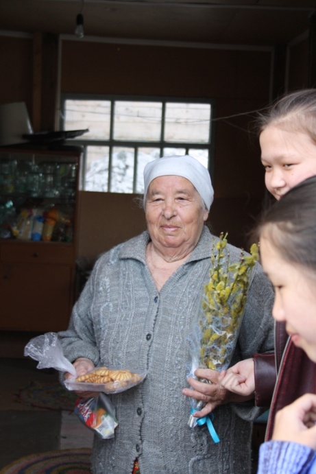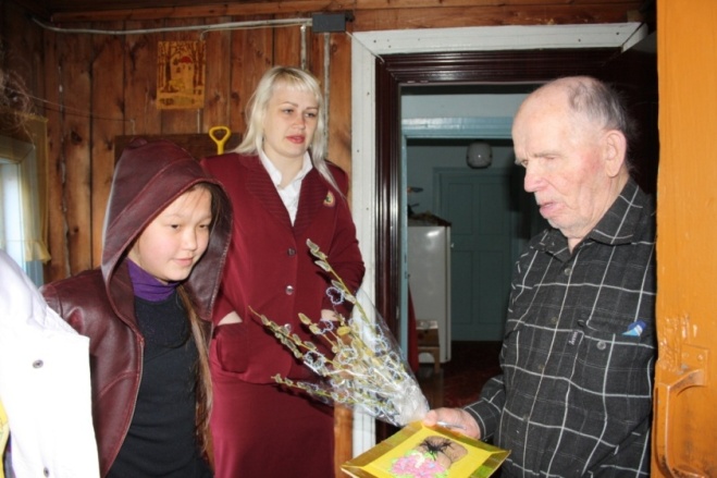 - провели совместно с воспитанниками МКОУ школы - интернат № 3 благотворительную акцию «Весенняя радость», где были вручены двадцати пенсионерам в сестринском уходе п. Шерегеш , четверым ветеранам ВОВ, шестерым проживающим в квартире маневренного фонда и восьмидесяти гражданам из триста шестидесяти пяти находящимся на социальном обслуживании сладкие подарки, поделки и букетики вербы, сделанные руками детей. Особую радость и тепло пенсионеры испытали от стихотворений, прочитанных воспитанниками школы - интернат №3.