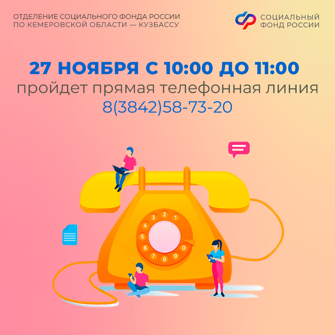 27 ноября, в четверг, с 10 до 11 часов в Отделении Социального фонда России по Кемеровской области - Кузбассу пройдет телефонная прямая линия. ... Читать дальше »