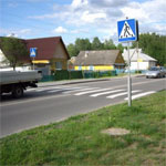 С переходом дороги по проезжей части дело обстоит несколько сложнее. Границы пешеходного перехода определяются специальной разметкой (Вы можете видеть ее на рисунке слева). Если есть разметка, но нет знаков - это нормальный пешеходный переход. Границы перехода совпадают с границами разметки. Переходить такой переход нужно прямо по разметке. Если идти рядом с разметкой - то это уже не пешеходный переход, а нарушение правил. А для чего же нужны знаки "Пешеходный переход", которые так же есть на картинке? Нужны они на тот случай, когда разметка сотрется или будет плохо видна (например: зимой). В случае если есть знаки и нет разметки, то именно знаки определяют границы пешеходного перехода. Что же делать, если есть и знаки "Пешеходный переход", и соответствующая разметка? Чем в этом случае определяется граница перехода? В таком случае граница определяется разметкой. Важно понимать, что если разметка была вчера, а сегодня положили новый асфальт и разметки нет, то и пешеходного перехода тоже больше нет. Правила перехода перекрестков. Можно переходить дорогу на перекрестках, но только если рядом нет пешеходного перехода. Причем нужно переходить по таинственным линиям тротуаров и обочин. Что бы это значило? На самом деле ничего сложного тут нет. Просто необходимо двигаться по перекрестку не наискосок (сразу пытаться перейти 2 дороги), а параллельно одной из проезжих частей. Добавлю совет от себя, чтобы упростить Вам переход дороги на перекрестке. Допустим, Вы подошли к перекрестку, но переходить боитесь. Две дороги, много машин, за всеми не уследишь. В этом случае нужно сначала посмотреть через плечо - назад. Во время пересечения проезжей части Вы не сможете наблюдать за машинами приближающимися сзади. И хотя по правилам они должны уступить Вам дорогу, на практике такое встречается нечасто. Нужно дождаться такого момента, чтобы сзади никто не поворачивал в Вашу сторону. После этого смотрим по оставшимся сторонам (в 3 стороны можно поглядывать одновременно) и аккуратно переходим. Если не получилось перейти - опять смотрим назад и т.д. Правила перехода проезжей части в иных случаях. Обратимся опять к правилам дорожного движения: При отсутствии в зоне видимости перехода или перекрестка разрешается переходить дорогу под прямым углом к краю проезжей части на участках без разделительной полосы и ограждений там, где она хорошо просматривается в обе стороны. Т.е. можно переходить дорогу и не по переходу или на перекрестке. Но при этом нужно учитывать, что перехода или перекрестка не должно быть в зоне видимости (если зрение хорошее, то прогуляйтесь до дальнего перехода). Также отмечено, что переходить нужно в тех местах, где проезжая часть хорошо просматривается в обе стороны. О чем это свидетельствует? О том, что Вы переходите дорогу не по переходу на свой страх и риск. Не увидели автомобиль - сами виноваты. Ну и если посреди дороги забор, клумба, трамваи и т.п., т.е. разделительная полоса, то переходить дорогу вне перехода запрещается.