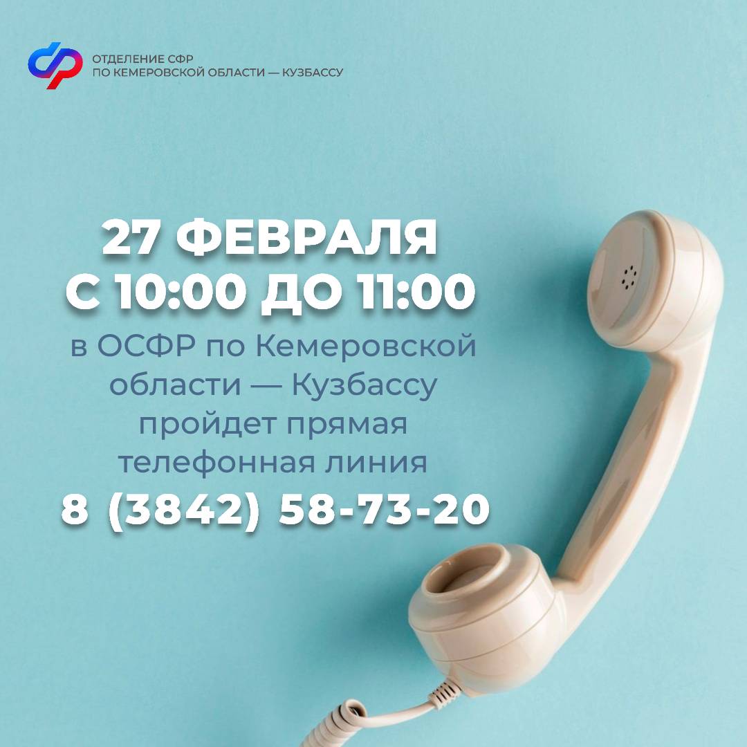 27 февраляя, в четверг, с 10 до 11 часов в Отделении Социального фонда по Кемеровской области – Кузбассу пройдет телефонная прямая линия.