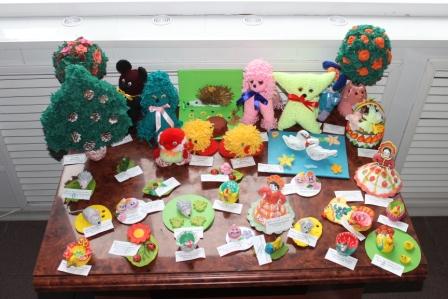 На выставке представлено более 50 работ воспитанников учреждений интернатного типа. Ребятишки из детского дома «Родник» п. Спасск, школ интернатов №3 и №19 г. Таштагол отдали на выставку свои лучшие работы. Живопись, аппликации, поделки из бумаги и теста, вязаные игрушки и многое другое сделанное детскими руками. Все работы выполнены на высоком уровне. Презентация детских работ вызывает интерес у служащих администрации. Около экспозиции останавливаются и посетители учреждения.